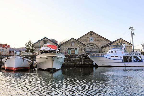 岸上有座老舊建築物寫著"小樽北運河",現在裡頭已經改建為gold stone咖啡店。