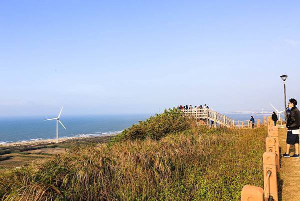 停車場就位於園區其中幾個平台上,假日往往人滿為患,車位一位難求。停車場處就有不錯的視野,可以遠眺整個後龍市區以及沿海的高聳風車~