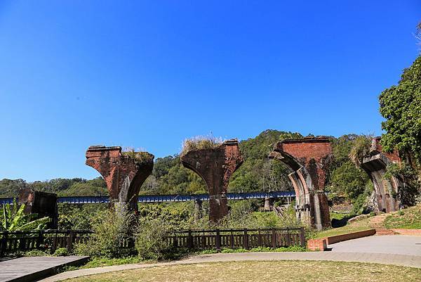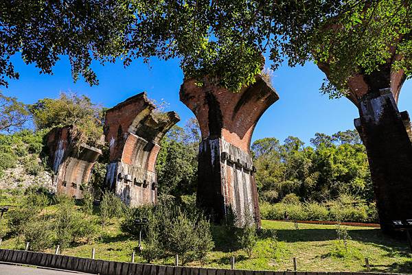 龍騰斷橋-北岸。橋墩上已有樹枝盤據,龍騰斷橋的橋墩沒用鋼筋、水泥,只以紅磚及花崗石利用石灰黏結而成,施工水準相當高超。