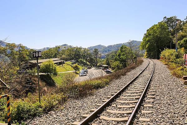 今日舊山線的位置。下方就是園區入口的收費停車場。