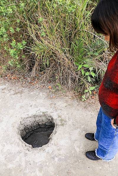 園區入口近來沒多久,發現一口大大的噴泥盆!這可不是排水溝,裡頭都是稠稠的泥漿,不時會有氣泡竄出。