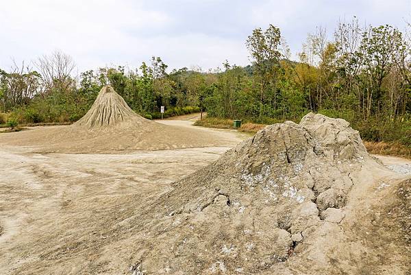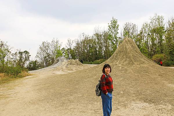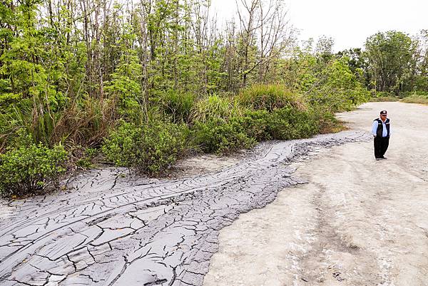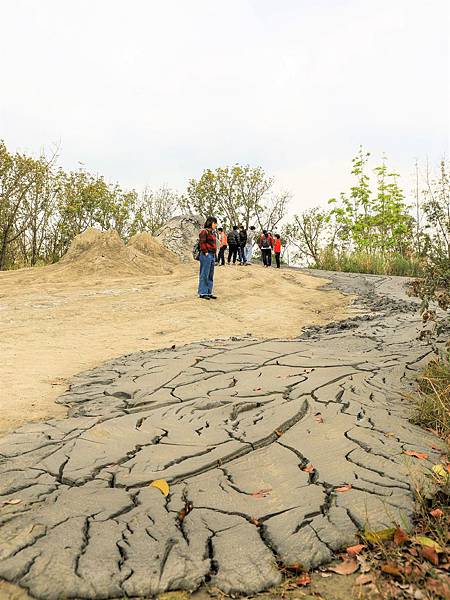 聽當時的導覽人員說,身後這兩座都是之前噴發過的泥火山,乾掉後就形成高約3-5公尺的泥錐。