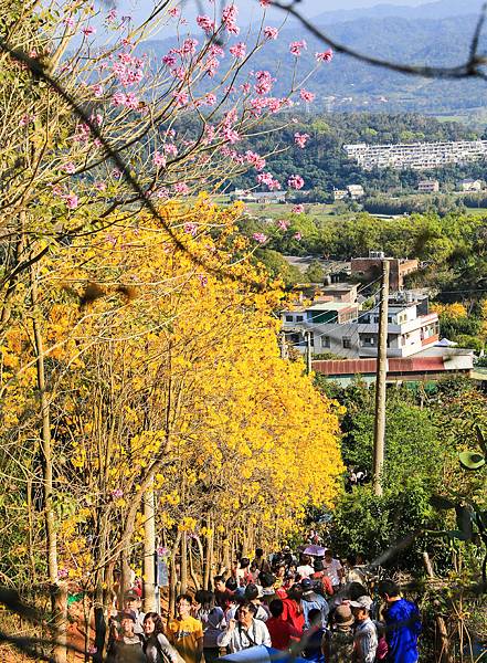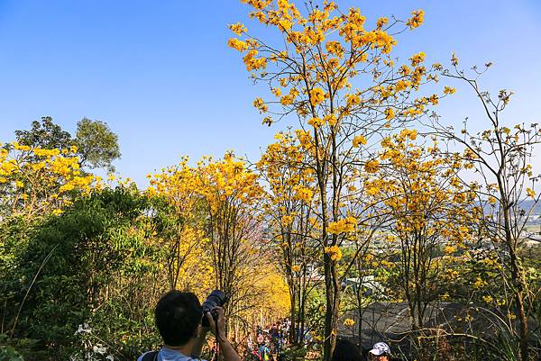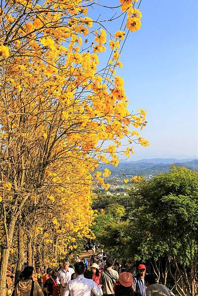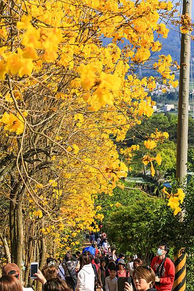 造訪當天適逢連假,遊客絡繹不絕,因此將車子停在離451巷約200公尺處。沿路走來,特別是快到451巷巷口這段路,沿途都是盛開的黃花風鈴木。