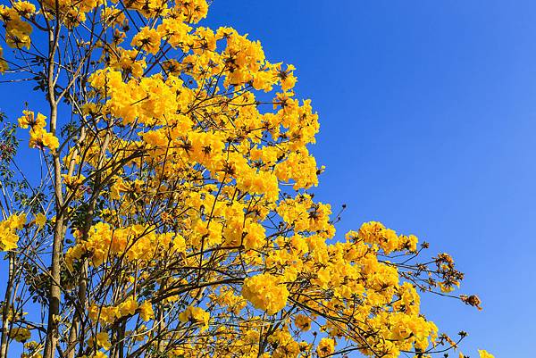 黃花風鈴木 (學名Tabebuia chrysotricha) 又稱金風鈴、黃金風鈴木,紫葳科植物,是巴西的一種常綠植物,被認為是巴西的國樹。花朵呈現非常華麗的金黃色,花期約在每年的4月左右。台灣有許多觀賞黃花風鈴木的絕美秘境,位於新竹新埔的詹家就是其中之一,此處屬私人景點,地主相當佛心,無償開放供遊客觀賞。