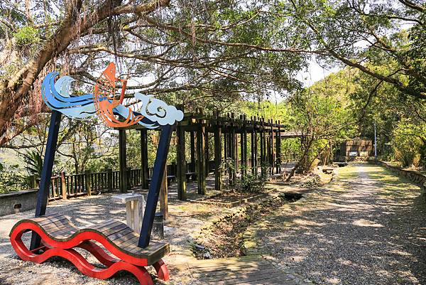 鯉魚山步道入口大致可從兩個地方起登,一個是從大溝溪治水園區,另一個就是從圓覺寺入口下方的起點。體力允許的話,可是著挑戰從大溝溪治水園區接圓覺寺步道,到達圓覺寺後在走鯉魚山,最後會接回圓覺寺步道,程一個小o行縱走。鯉魚山步道入口的鯉魚意象及寬敞的木製涼亭。