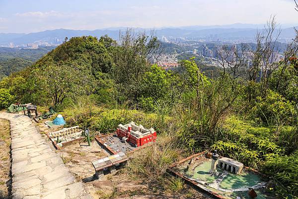 山頂的步道兩側也都是迷你造景創作,接著就沿山稜線一路往下。