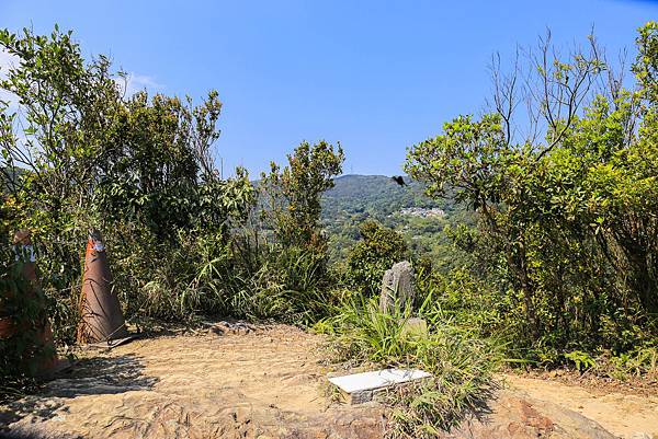 登頂!!!這裡算是鯉魚山"魚頭"的位置,山頂上有一顆圖根點。視野展望普通,可以看到台北101大樓。可惜這天霾害嚴重,遠景都白白糊糊的。