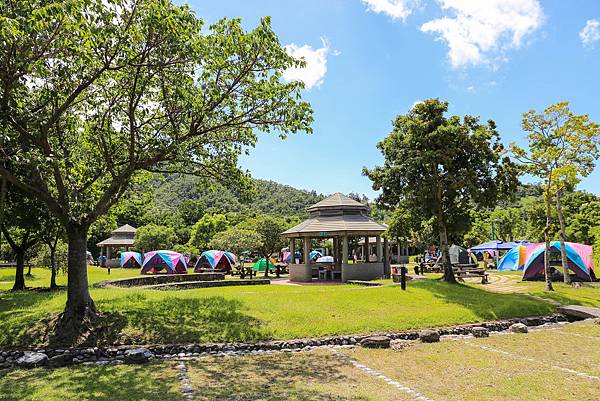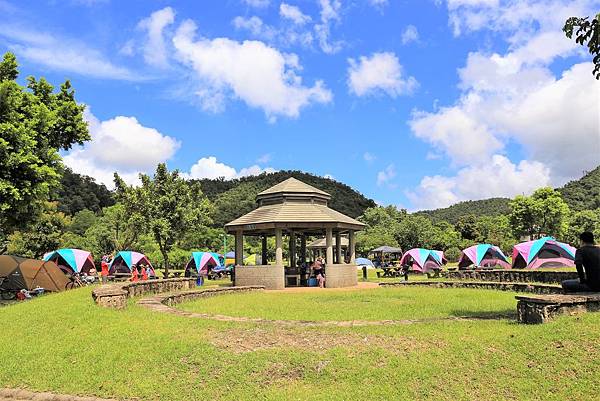 露營區設備相當完善,炊事亭、營火場地、雨天集合場、男女衛浴設備等一應俱全,每座烤肉亭都有八個烤肉架、八座營位、八套木造野餐桌椅,十分方便。