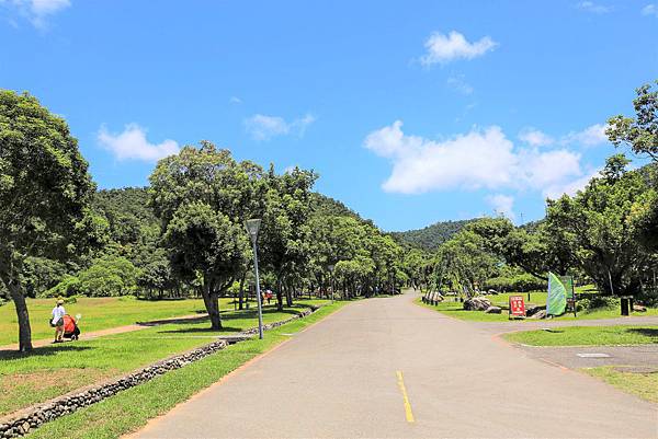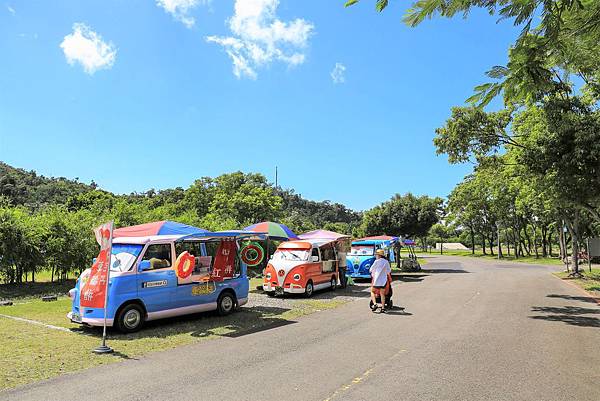 從入口進園區後,筆直的柏油路兩旁,其實就是園區的露營區。最近露營正火熱,當天的營地使用率約有7~8成。