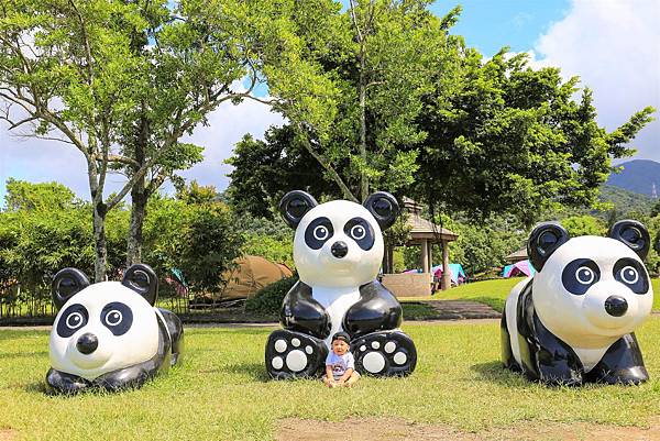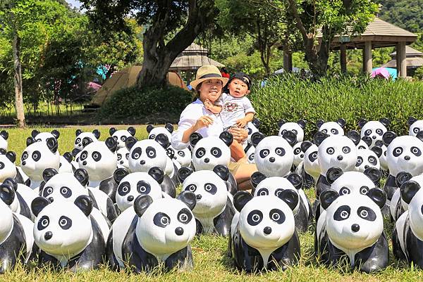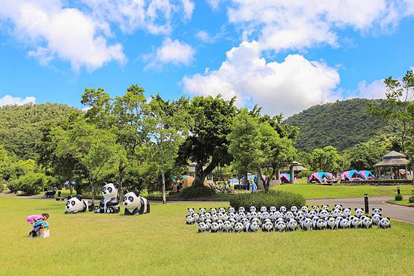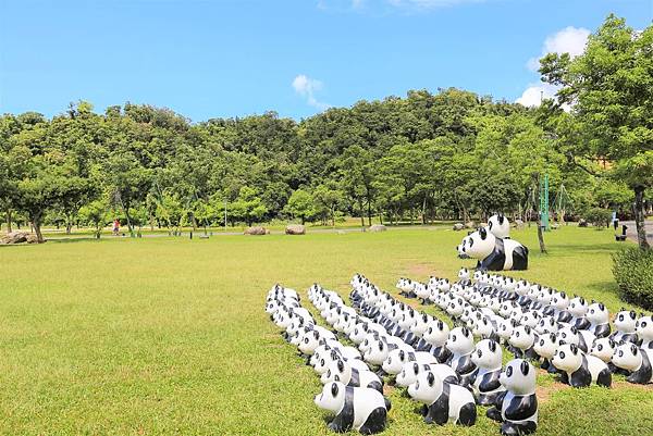 在另一區服務中心前的草地上設有熊貓公仔的裝置藝術品。