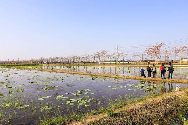 林初埤原為灌溉水源埤,位於後壁區與白河區兩鄉鎮交界處。白河區林初埤附近,一條田間產業道路兩旁及T字形自行車道上種滿兩排的木棉花樹,成為今日著名的「林初埤木棉花道」。林初埤木棉花道位於台南白河的南90鄉道上,每逢3、4月春末夏初之際,木棉花綠葉落盡,鮮豔的木棉花就會恣意喧鬧地開滿樹梢,長達一公里左右的木棉道花朵爭奇鬥艷,橘紅花海倒映在稻田水面上相當別緻動人,近幾年吸引了大量的遊客爭相追逐、拍攝。林初埤木棉花道更是躋身外國網站「BoredPanda」所整理的「世界最美15條花海街道」之一。